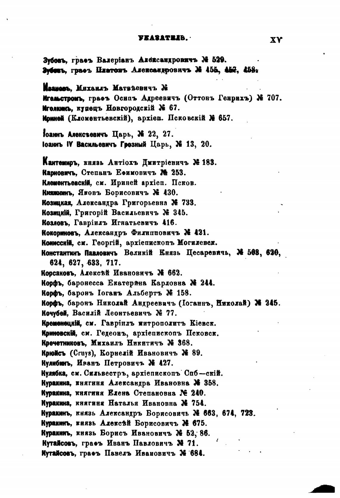 Курвпъ, князь Борись Ивановичъ Х 62; 86.