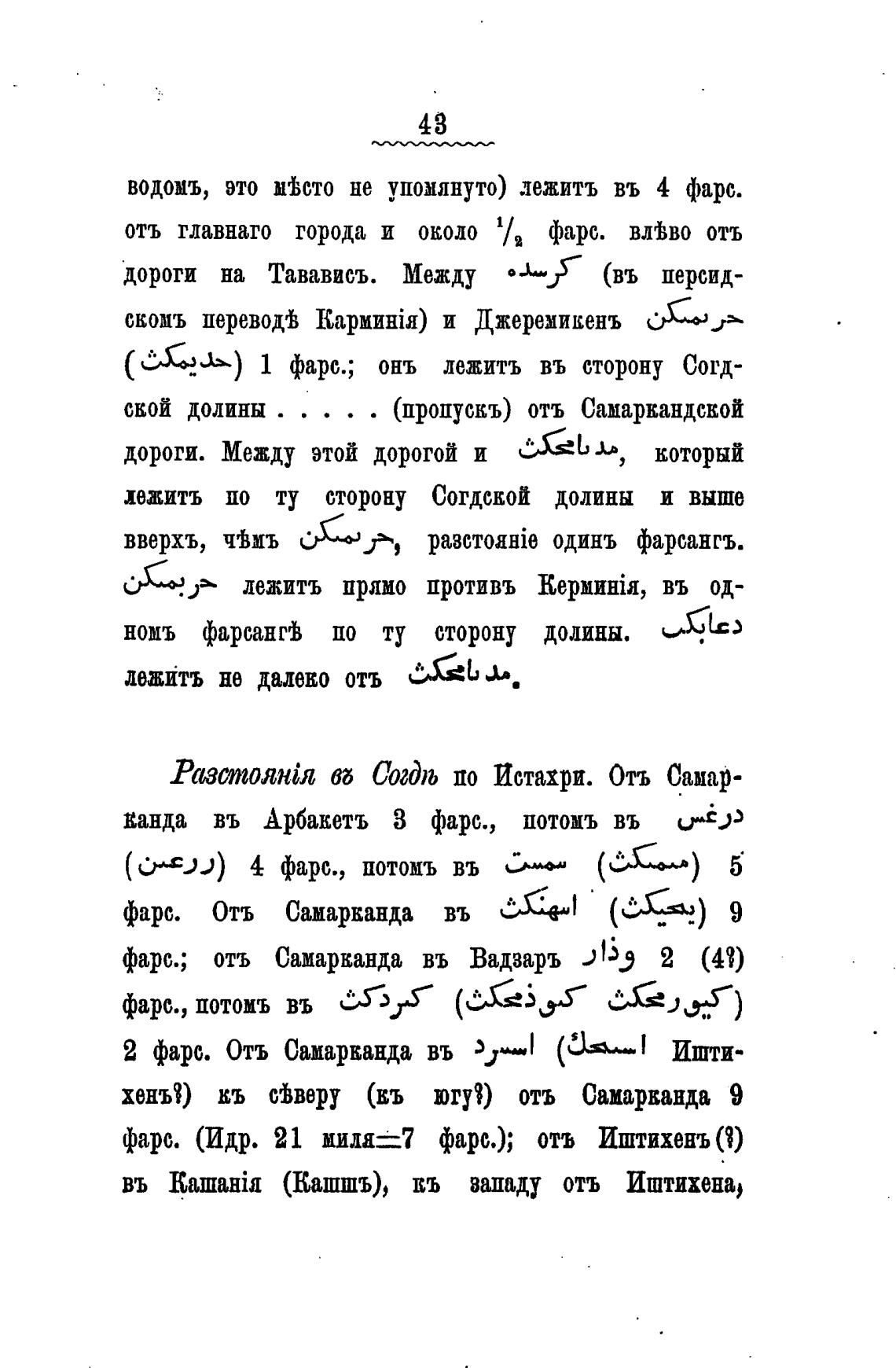 Разстоянјя Вб Согдљ по Истахри. Отъ Самар-