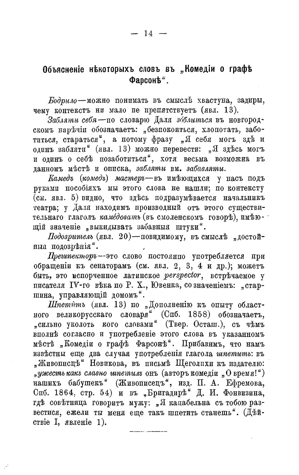 СПб. 1864. стр. 54) и въ „Бригадир±" Д. И. Фонвизина,