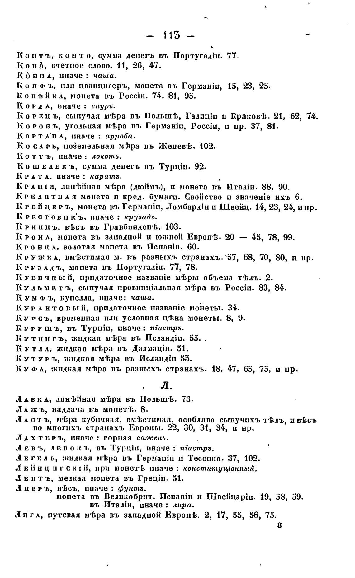 К о РЕЦ ъ, сыпучая меЬра въ 11озьш•Ь, I*a-II1iliu п Краков'Ь. 21,