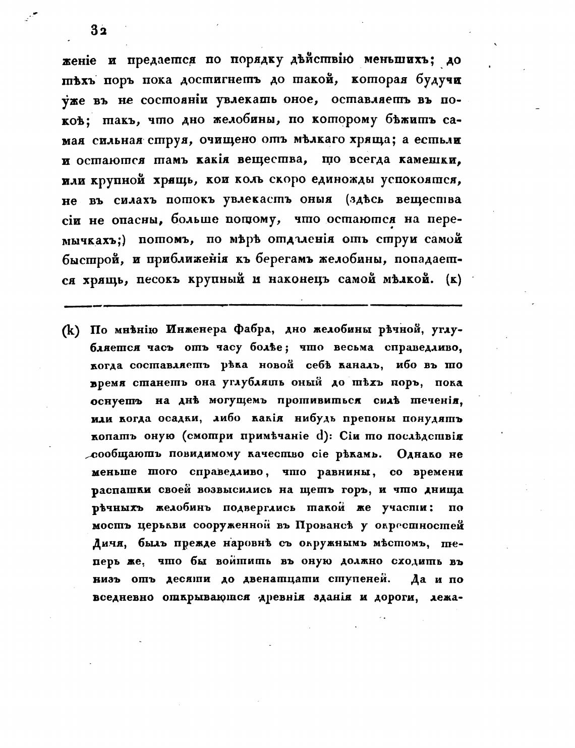 ся хрящь, песокъ крупный и наконецъ самой мьлкоЙ. (к)