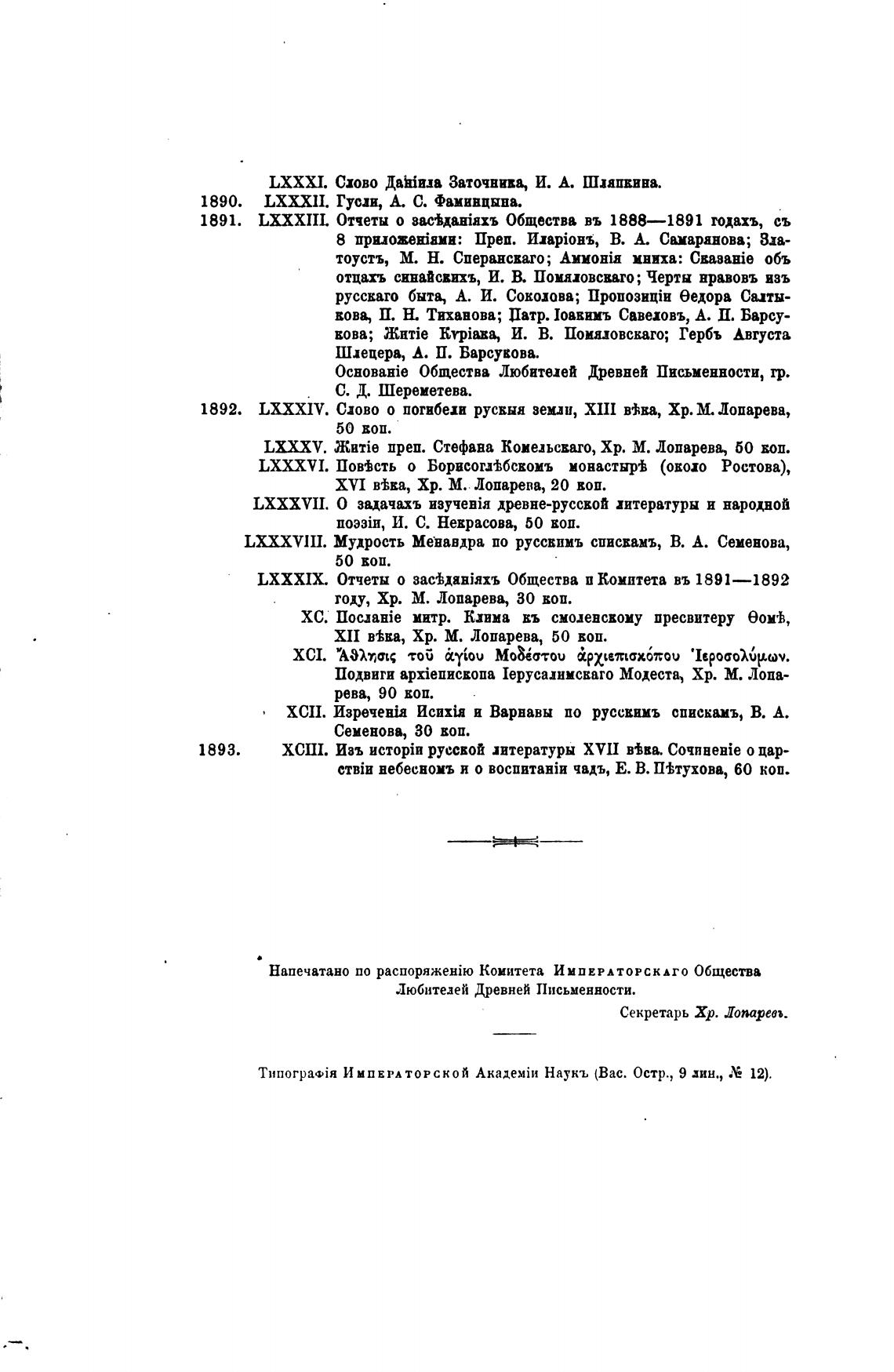 Напечатано по Комитета ИМПЕРАТОРСКАГО Общества