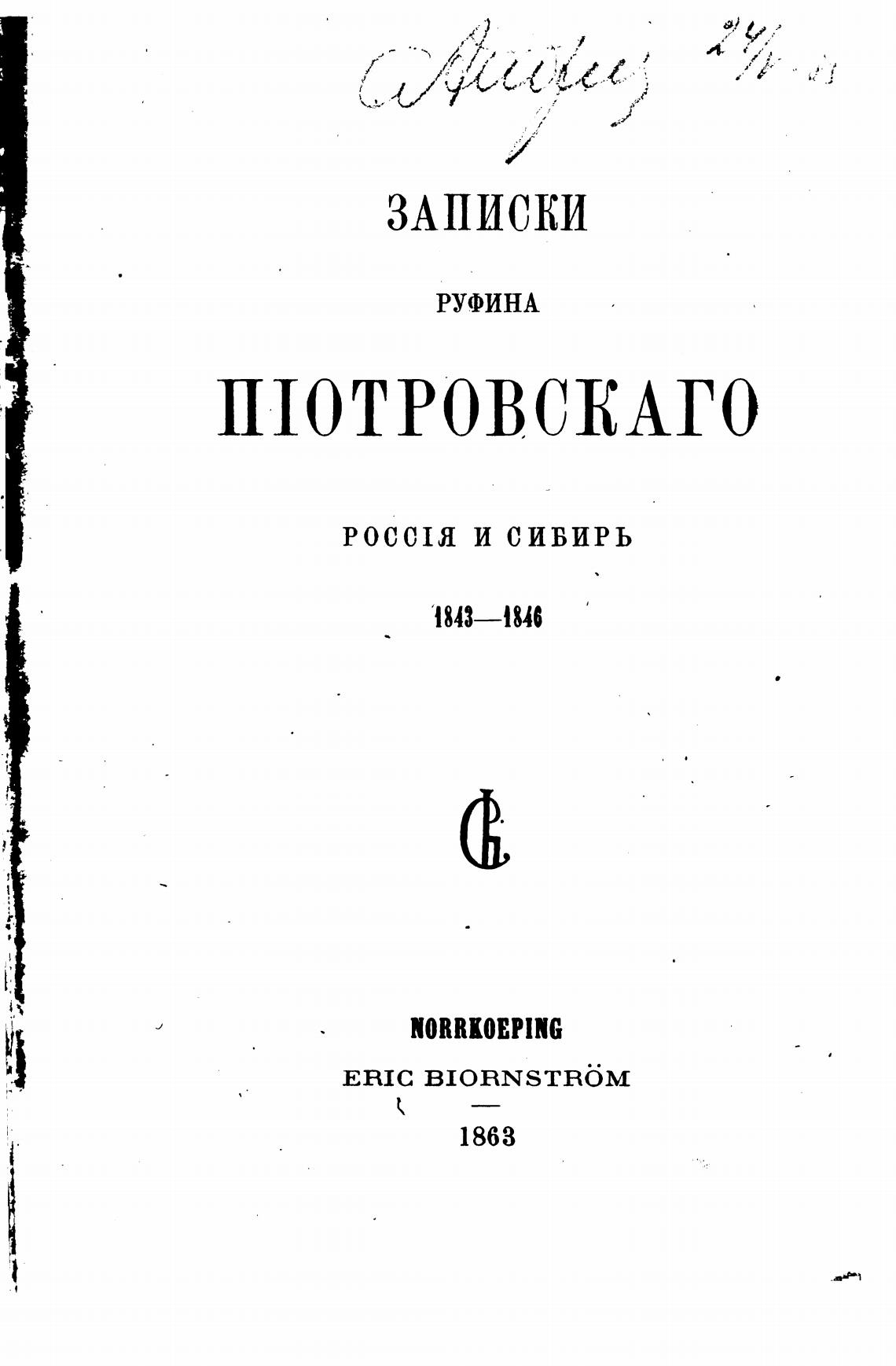 Записки. Россия и Сибирь. 1843-1846. - Пиотровский Р.
