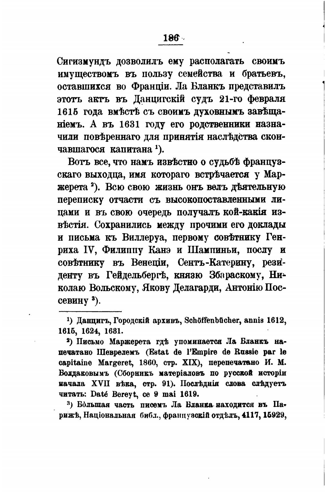 2) ПисьМо Маржерета упоминается Ла Бланвъ на-