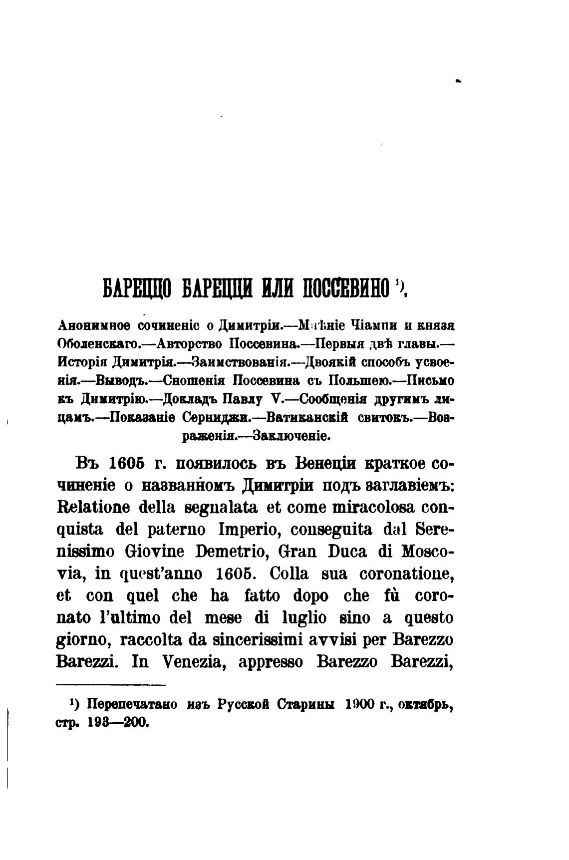 1) Перпечатано изъ Русиой Старины г., овтабрь,