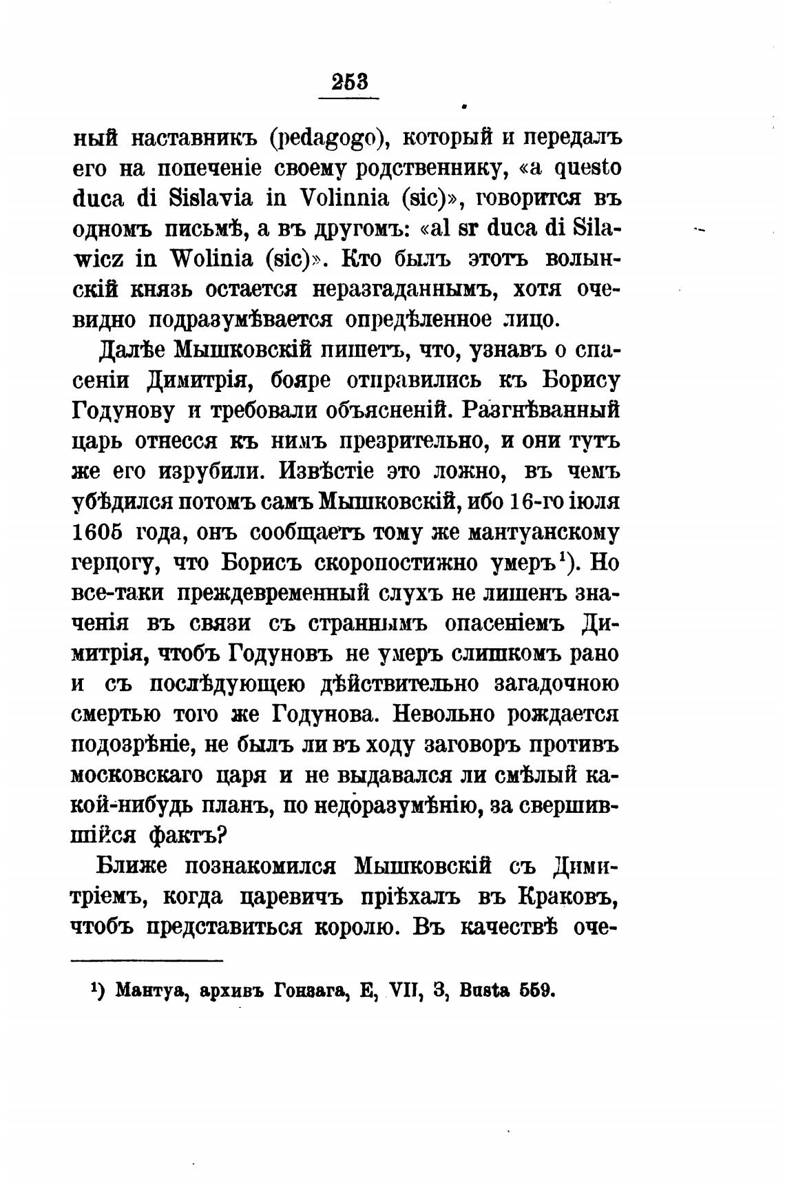 1) Мантуа, архивъ Гонвага, Е, VH, З, Basta 569.