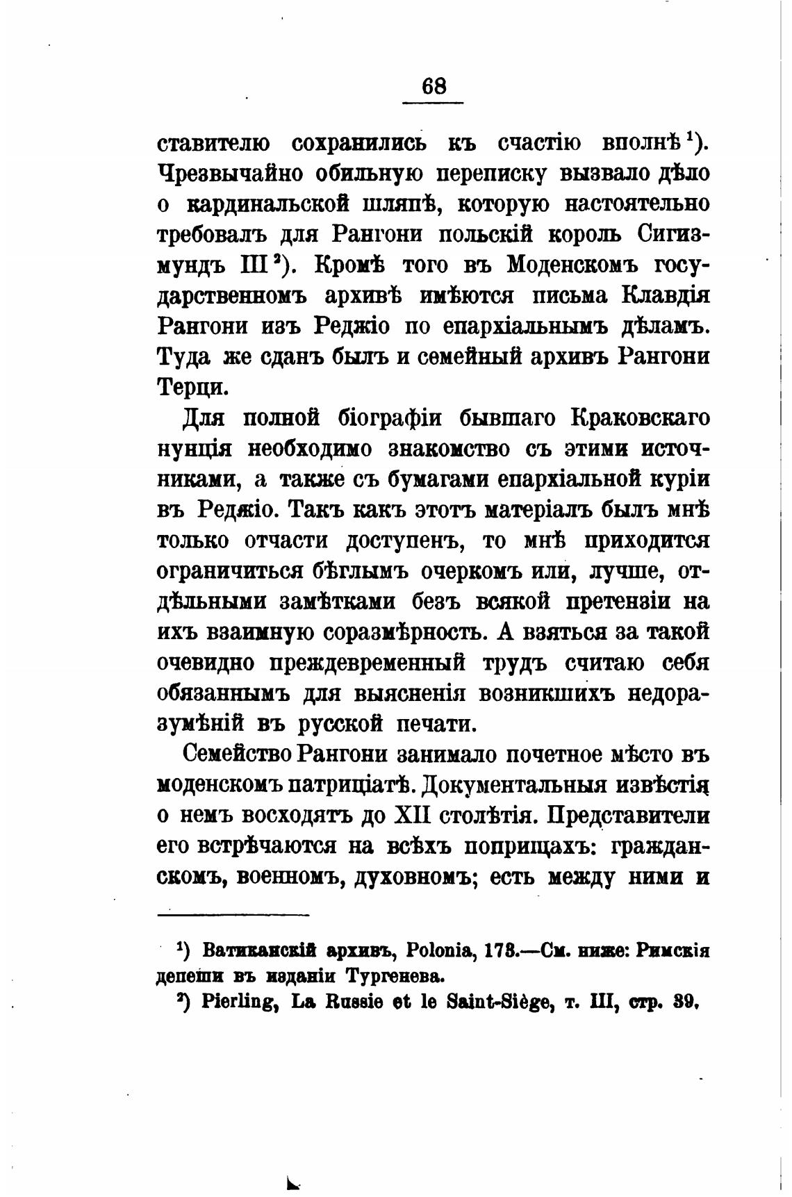 Туда же сданъ быль и семейный архивъ Рангони