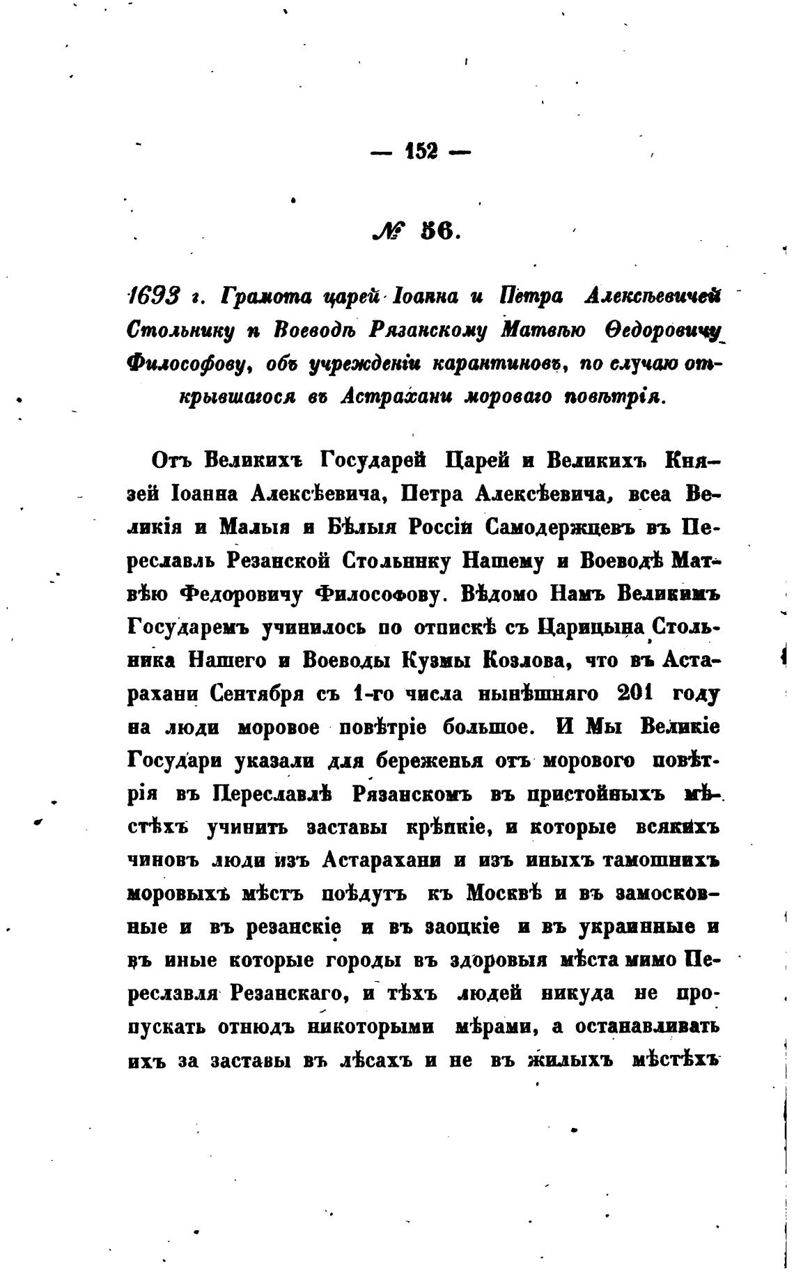 Государи указали для береженья отъ морового пойт-