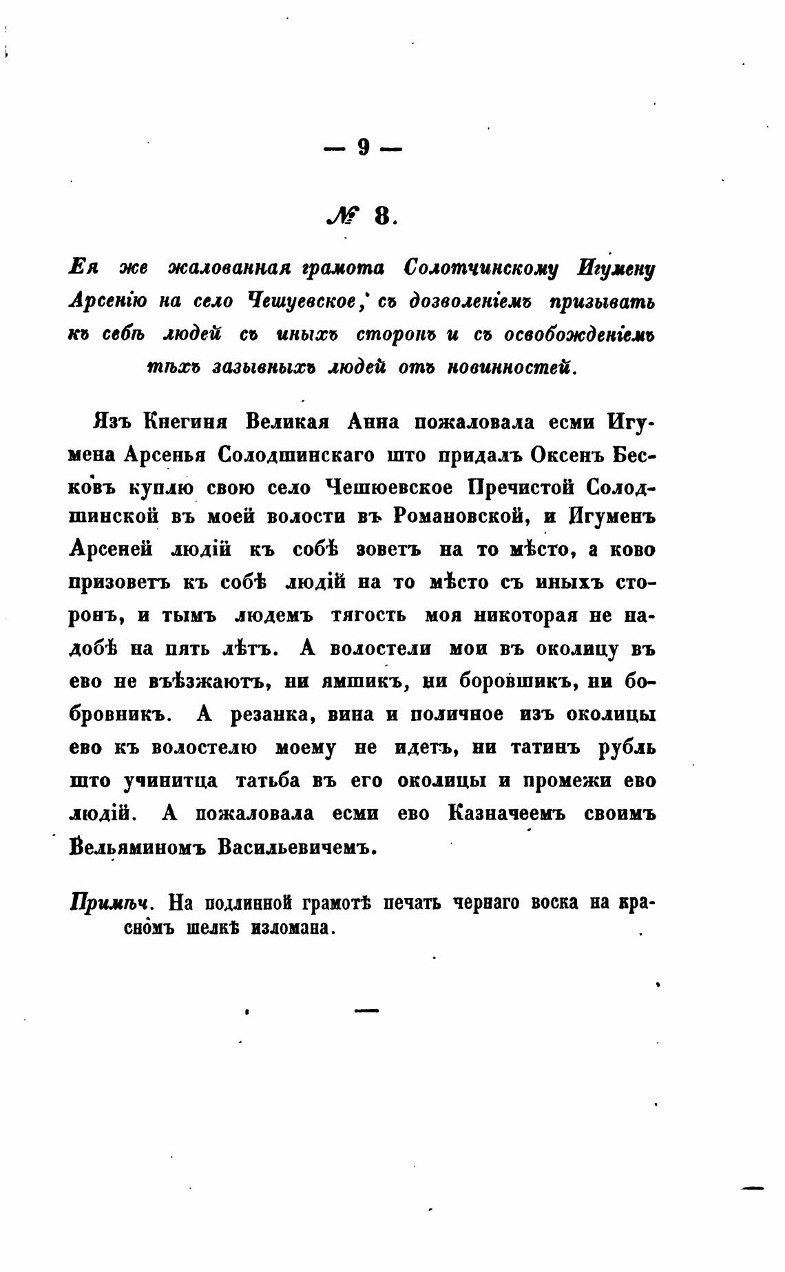 Язъ Кнегиня Великая Анна пожаловала есми Игу-