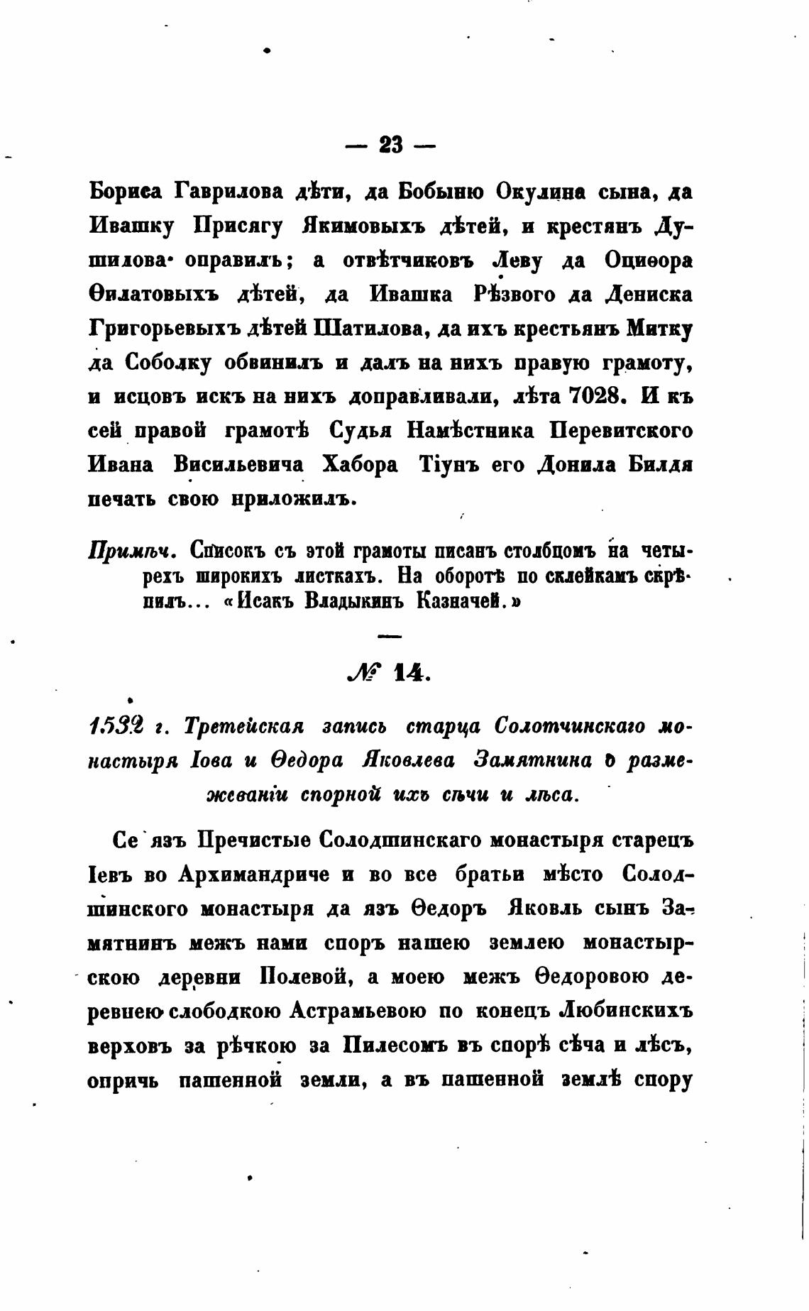 Прихљч. Списокъ съ этой грамоты писань етолбпомъ на четы-