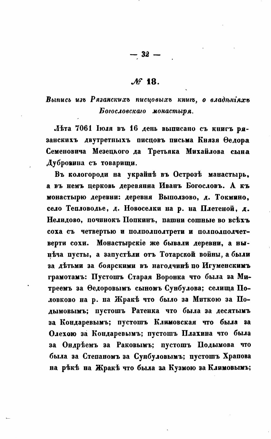 Выпись изб Рязанскихб ПИСЦОВЫХб КНИГб, о владљп{ясб