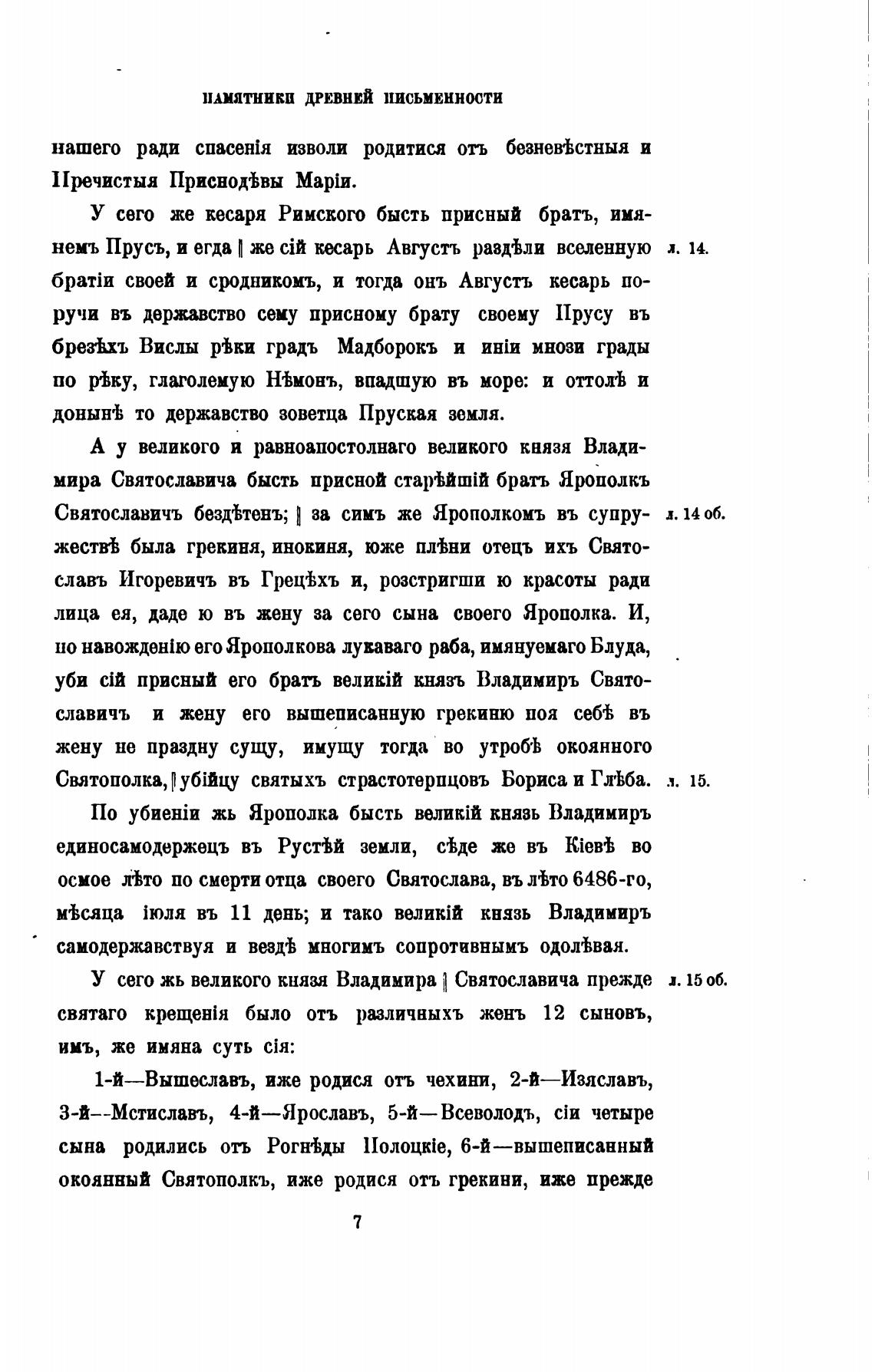 нень Прусъ, и егда П же киарь Августъ раздъли вселенную л. 14.