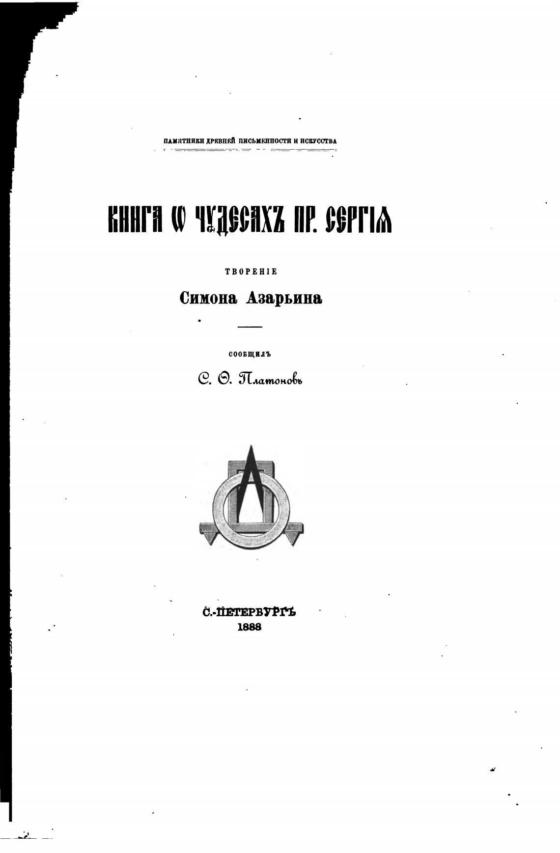 Книга о чудесах преподобного Сергия Радонежского. Творение Симона Азарьина. - Платонов С. Ф.