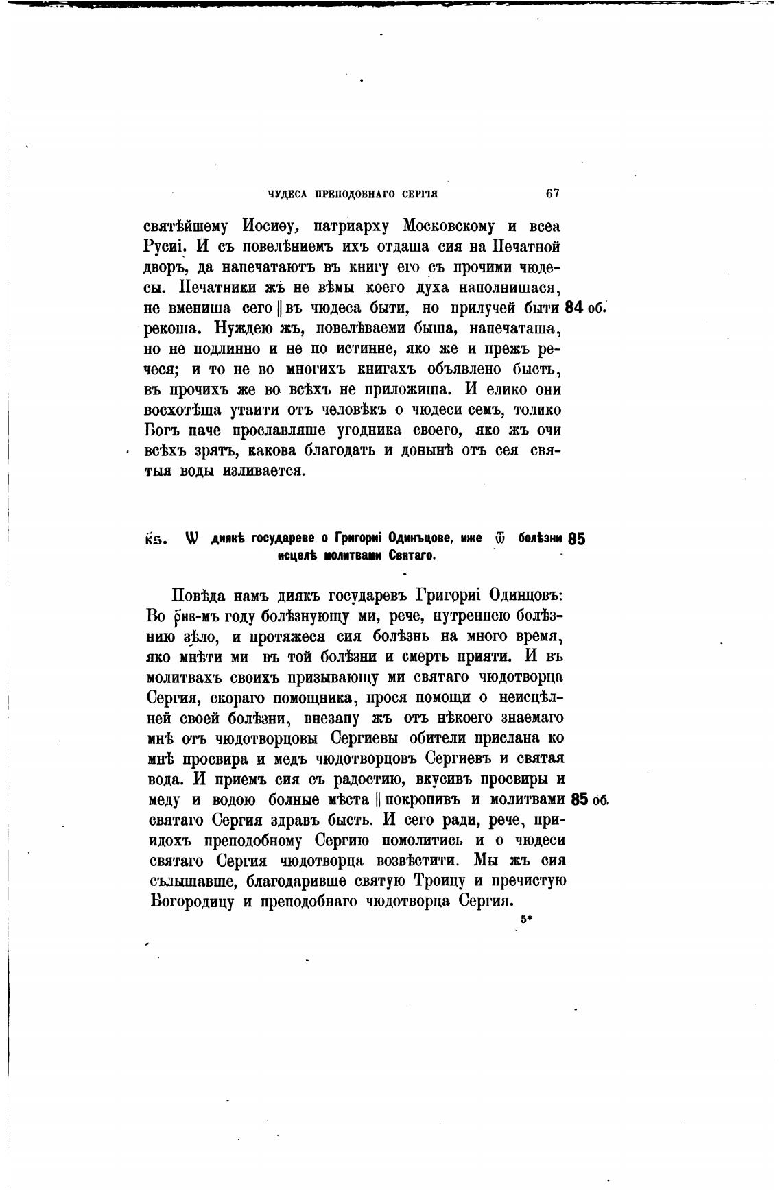 КБ. дияк% государеве о Одинъцове, иже болени 85