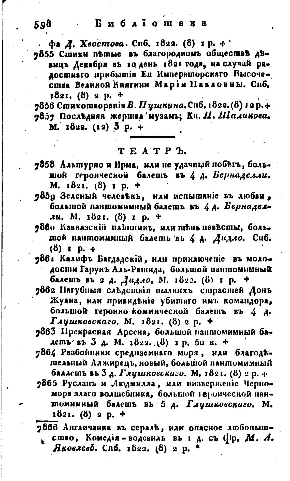 балеипь въ 2 А. Дидло. М. 1622. (6) р. +