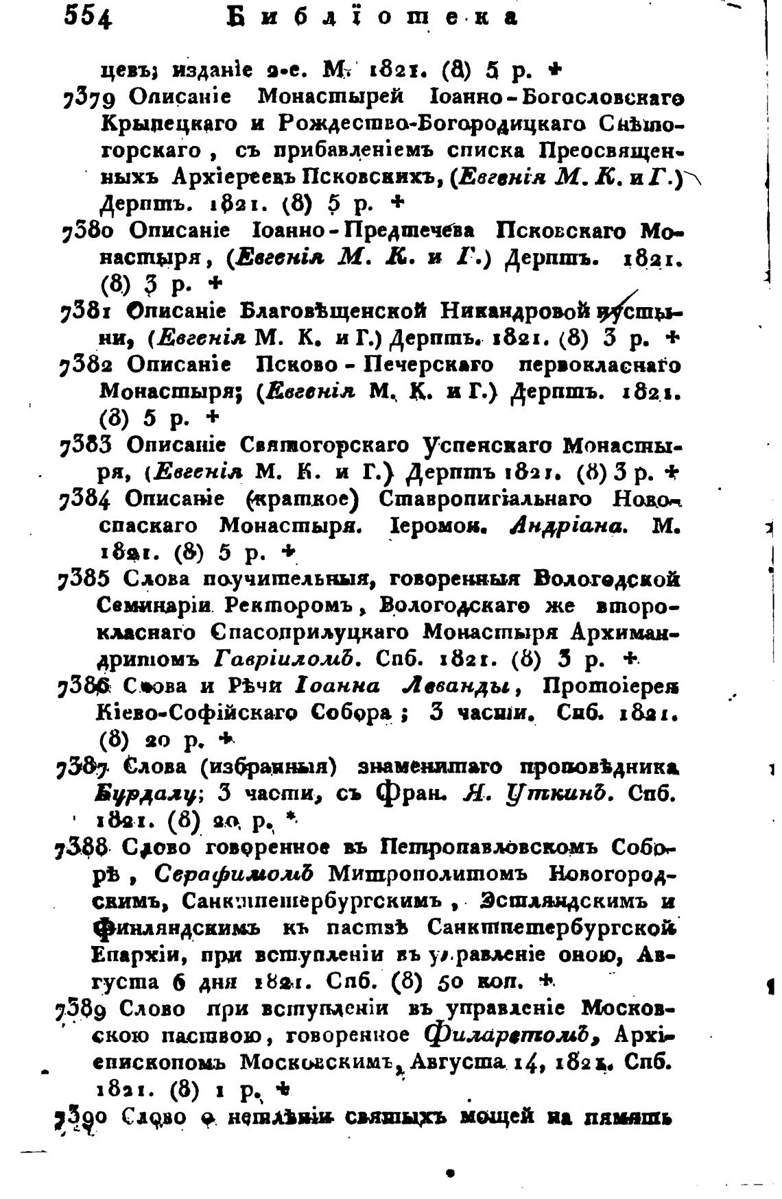 настыря, (EaeeHiR М. Л. и Т.) Дерпшъ. 1821.