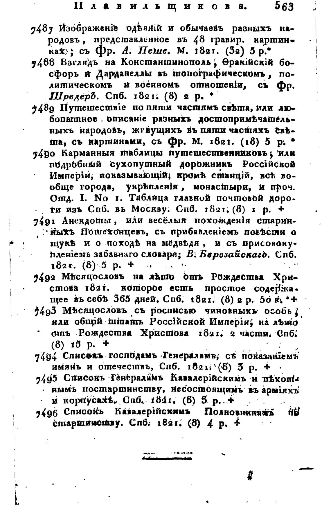 изъ СПб. вь Моекву. СПб. 1821. (8) р. +