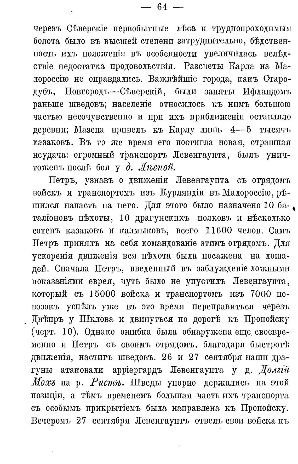 Вечеромъ 27 сентября Левенгауптъ отвелъ свои войска кт»