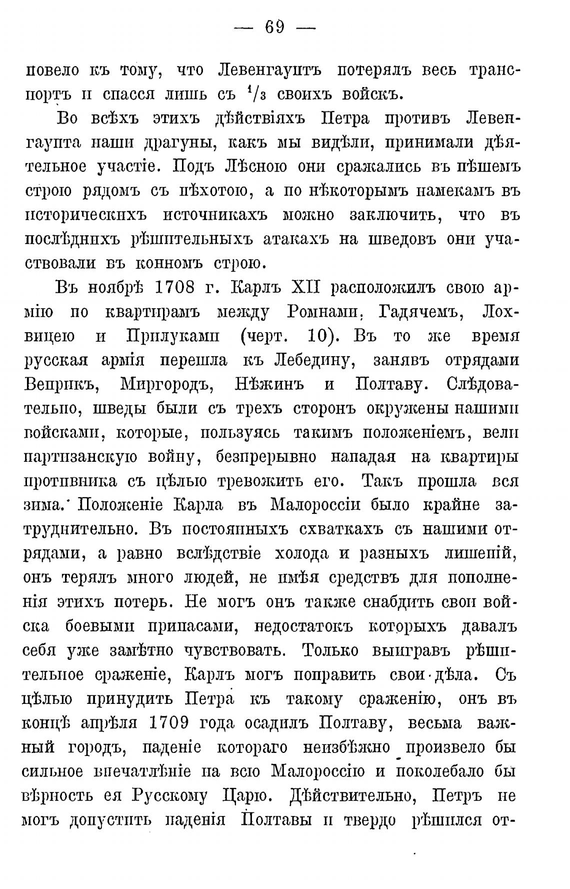 Въ ноябрј; 1708 г. Карлъ XII расположилъ свою ар-