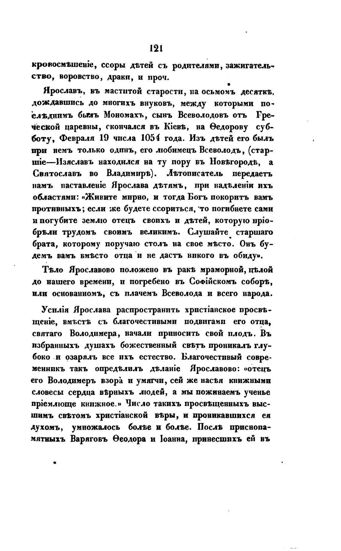 Твло Ярославово положено въ ракв мраморной, ц•влой