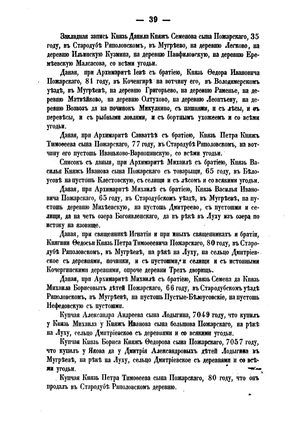 году, въ СтародубТ Ряполовскомъ, въ Мугрто, на деревню Легково, на
