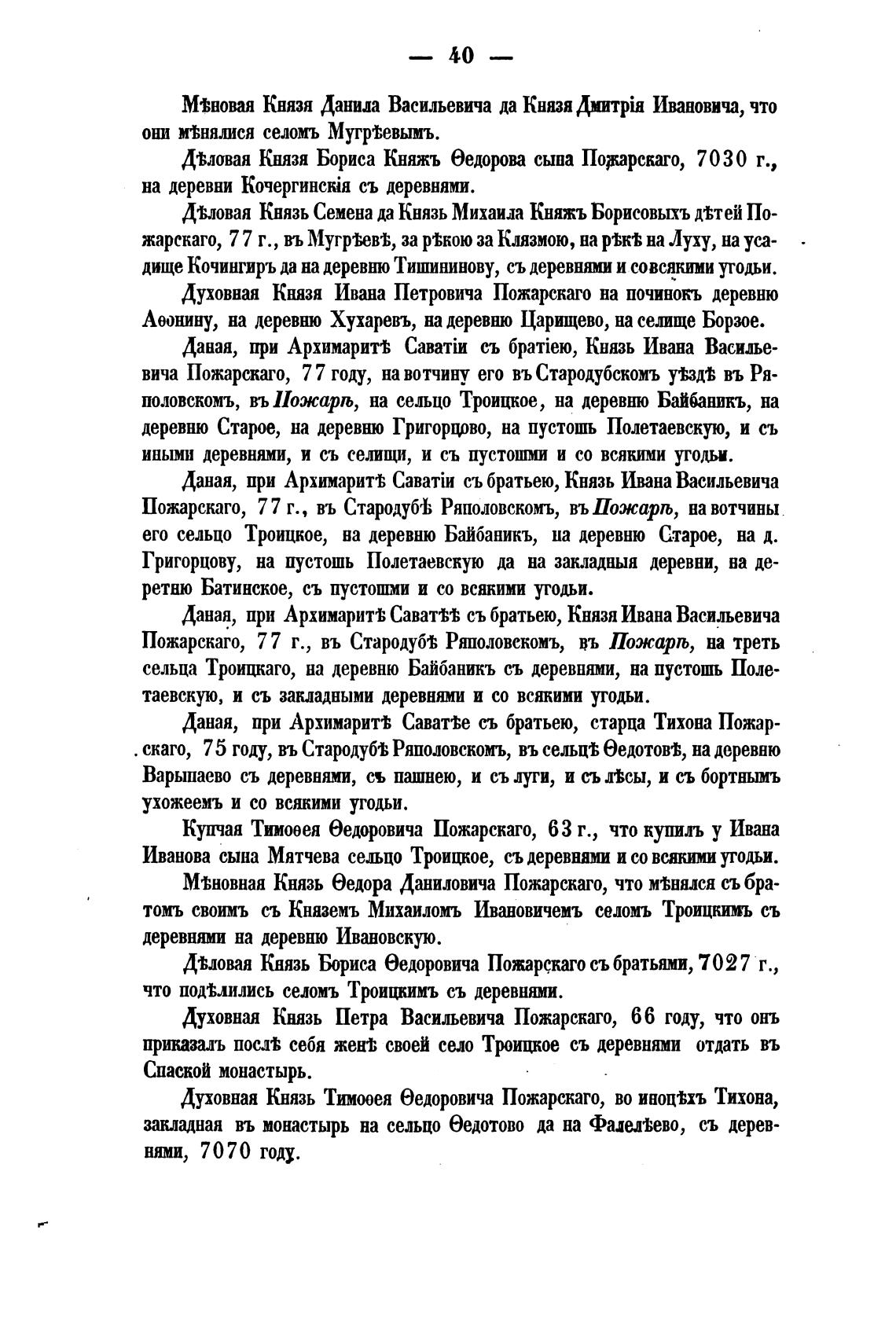 Пожарскаго, 77 г., въ Стародубгъ Ряполовскомъ, въШжарљ, на вотчины