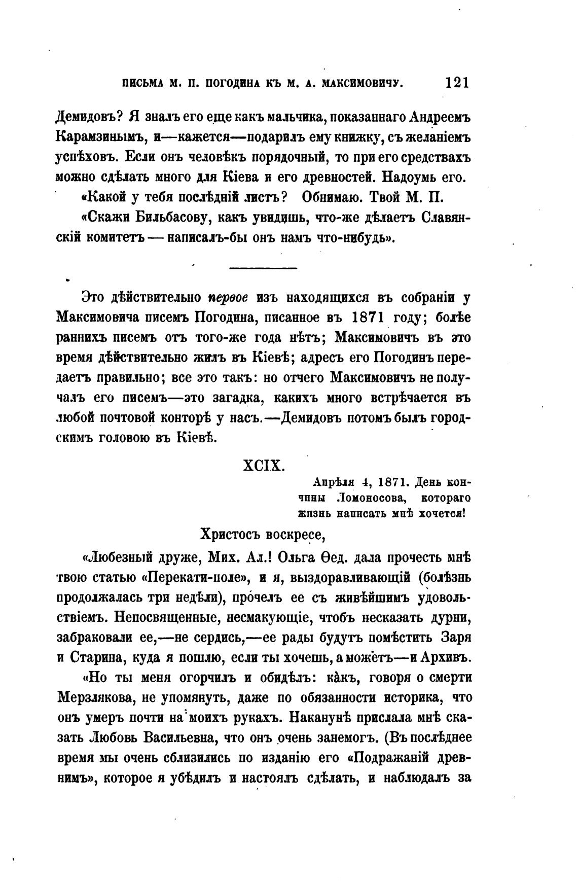 Максимовича писемъ Погодина, писанное въ 1871 году; ботве