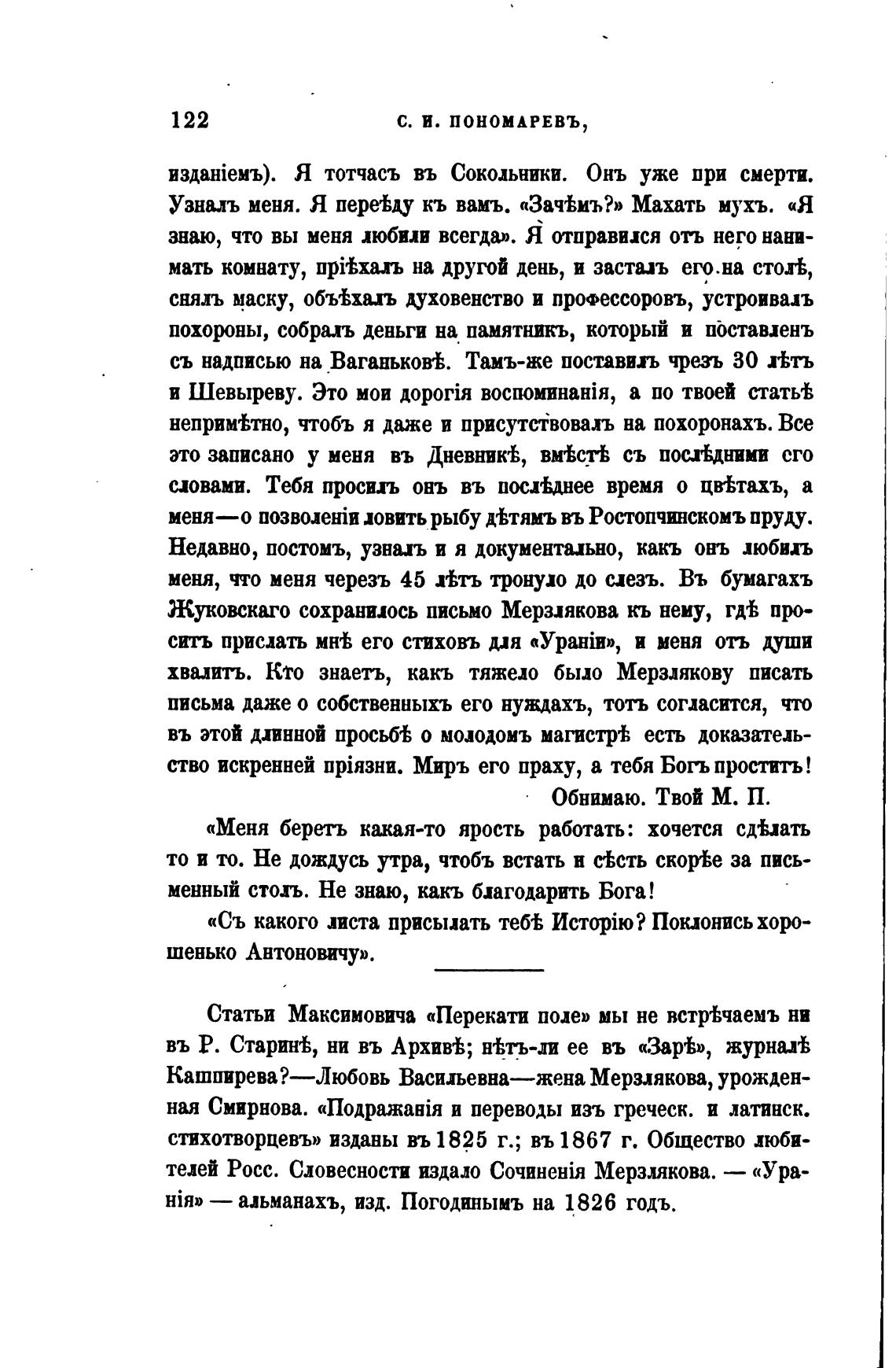 Жуковскаго сохранилось письмо Мерзлякова кь нему, про-