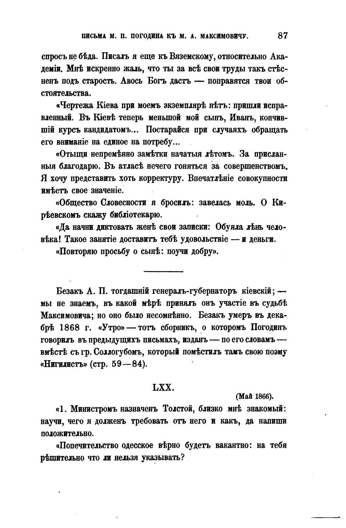 ПИСЬМА М. П. ПОГОДИНА КЬ М. А. МАКСИМОВИЧУ.
