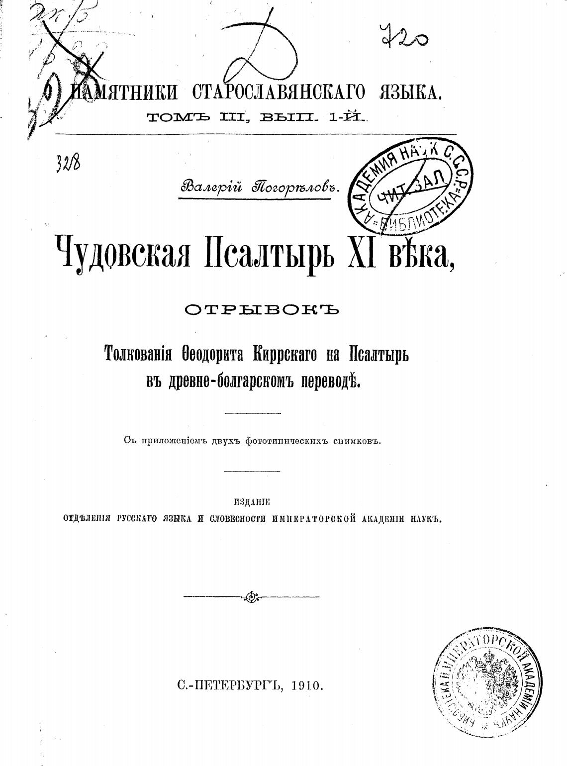 ОТДв„ИШЯ РУССКЛГО ЯЗЫКЛ И СЛОВЕСНОСТИ импврлторской АКАДЕМШ НАУКЪ.