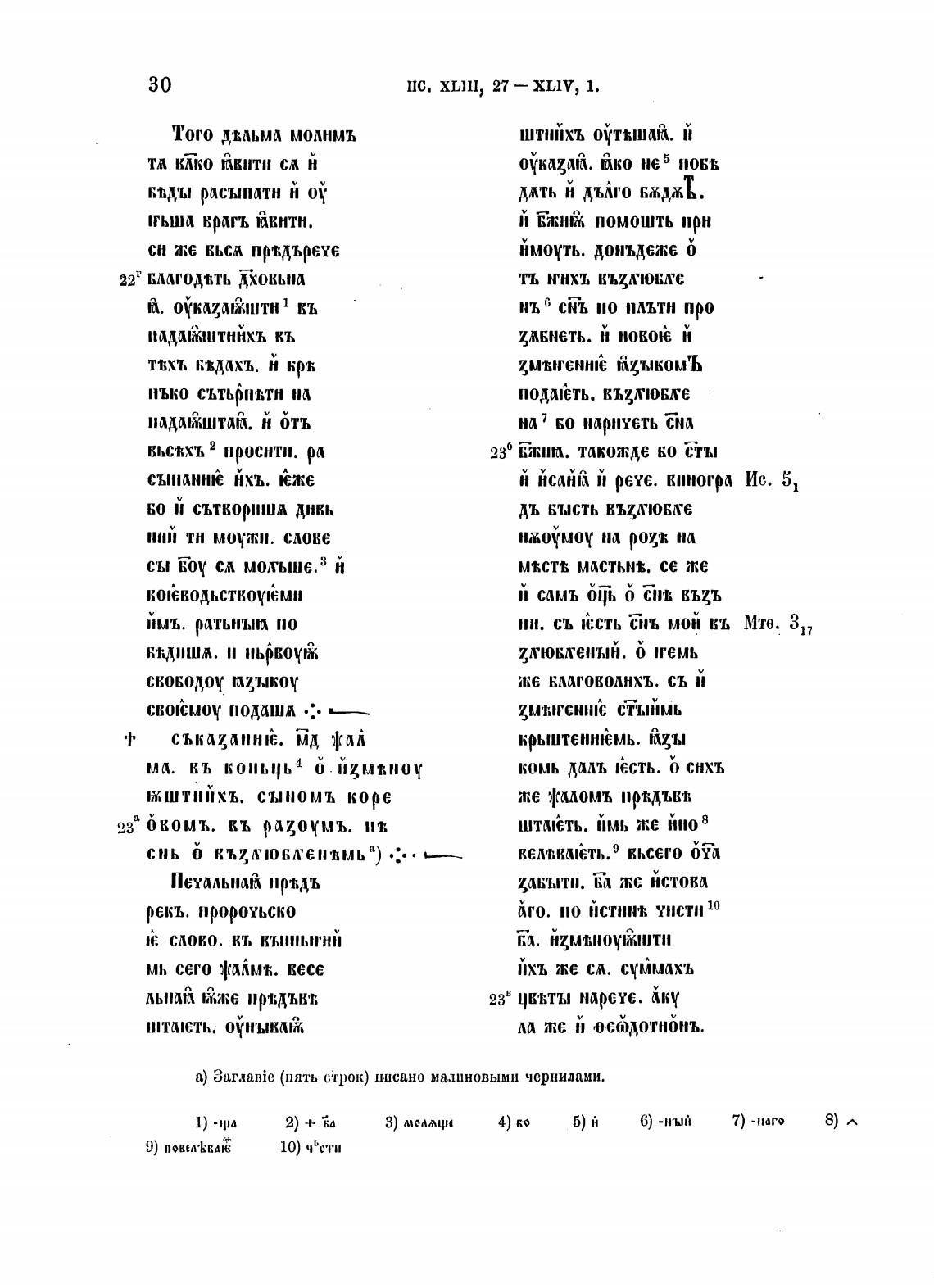а) 3aI'.qaBie (пять строк) писано малиновыми чернилами.