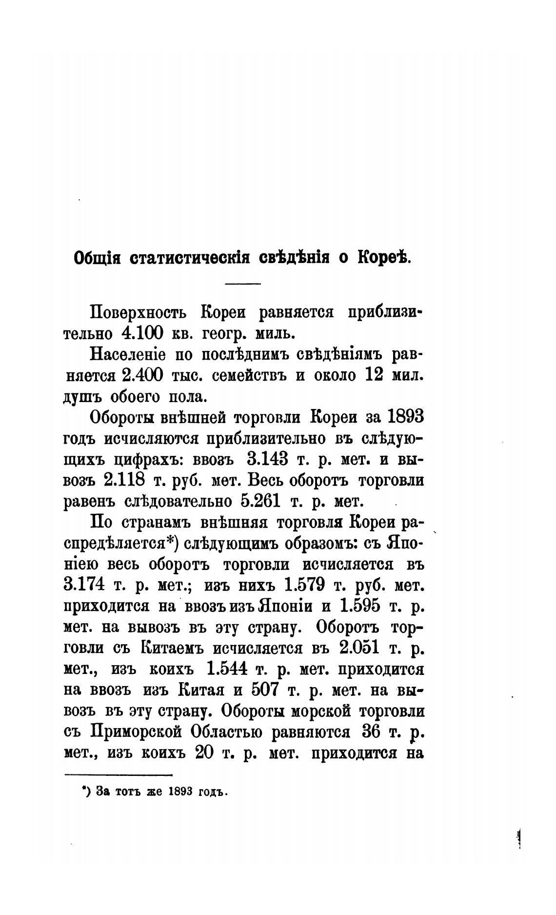 Обороты торговли Кореи за 1893