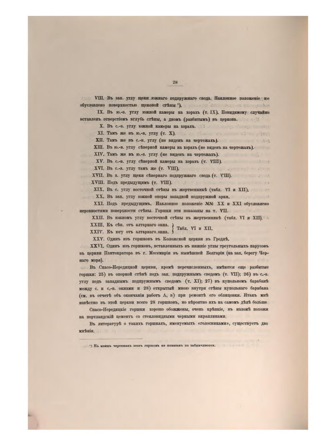 горшки: 25) въ опорной ст-ћн•ћ подт, Зап. подпружнымъ сводом•ь (т. УП); 26) въ с.-3.