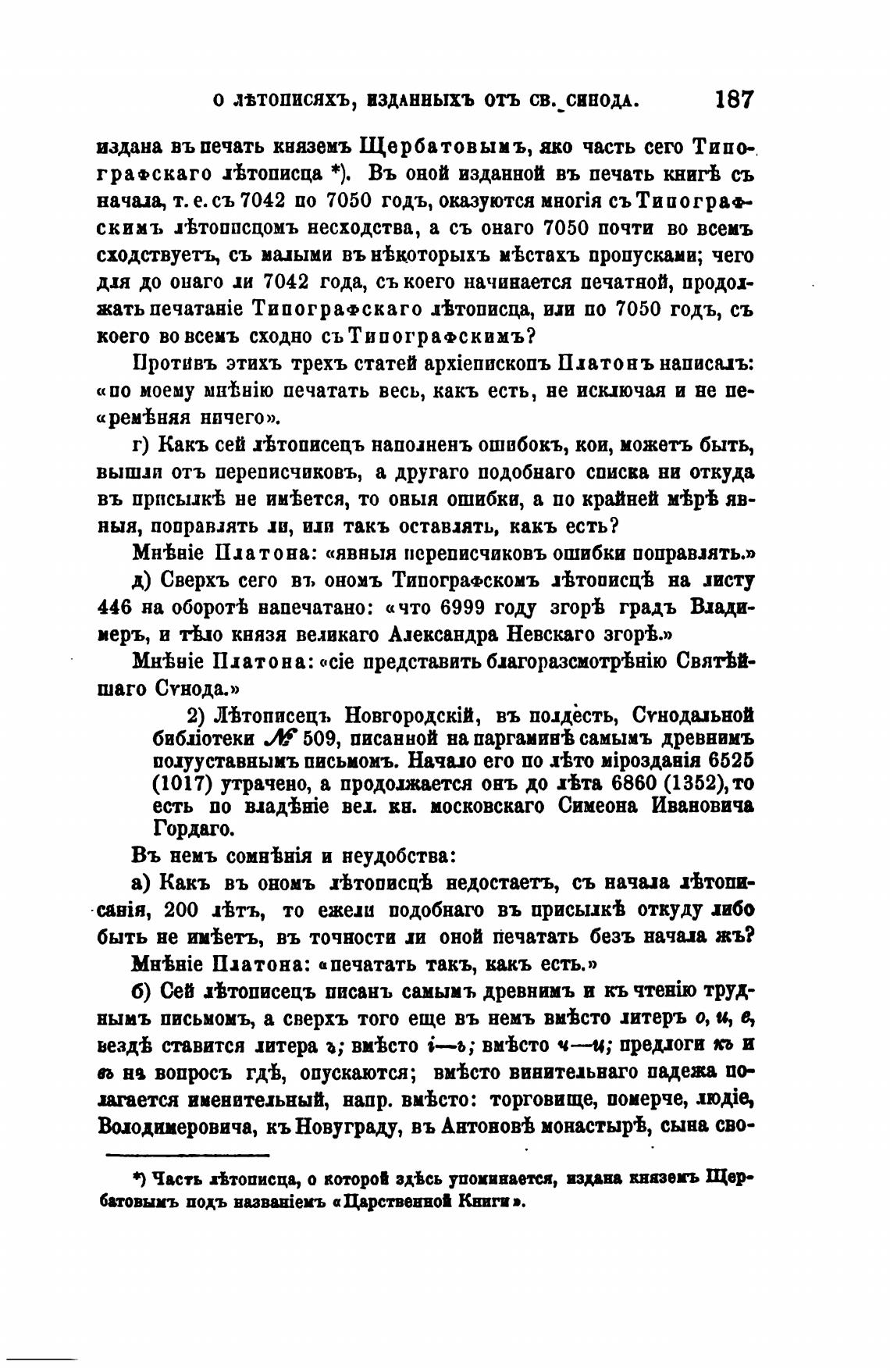 Часть Втописцв, о котороИ зд•Всь упоминаетя, издана княземъ Щер-