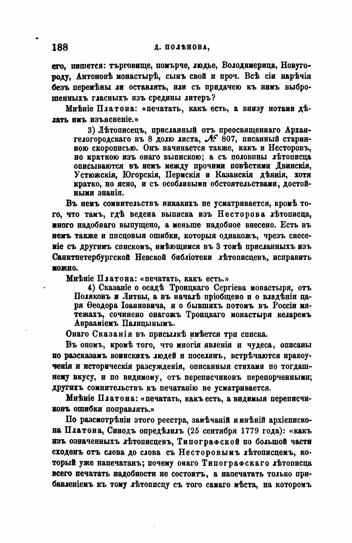на Платона, Синодъ опред•Ьлилъ (25 сентября 1779 года): «какъ