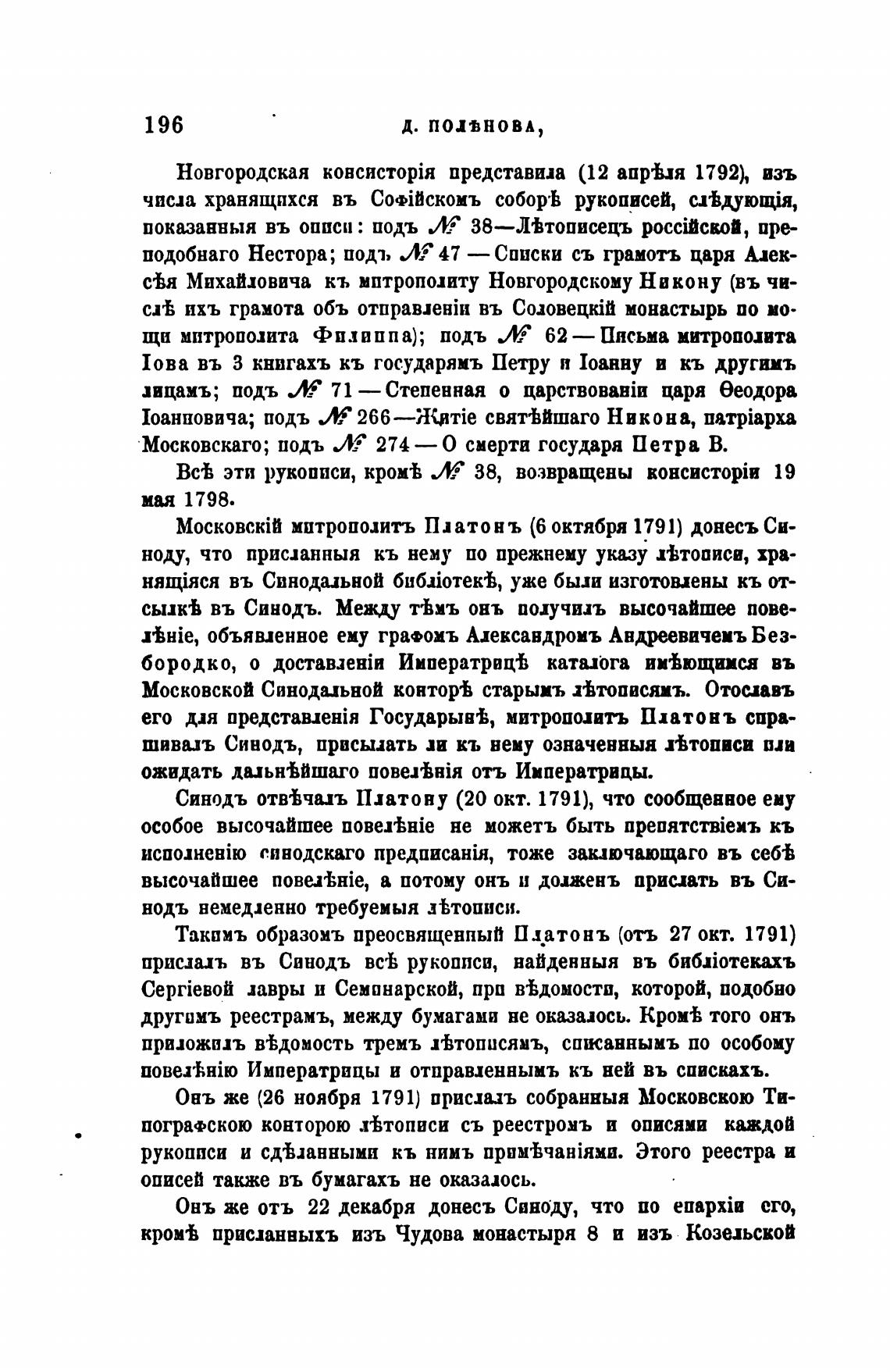 Синодъ отв%чалъ Платову (20 окт. 1791), что сообщевное ему