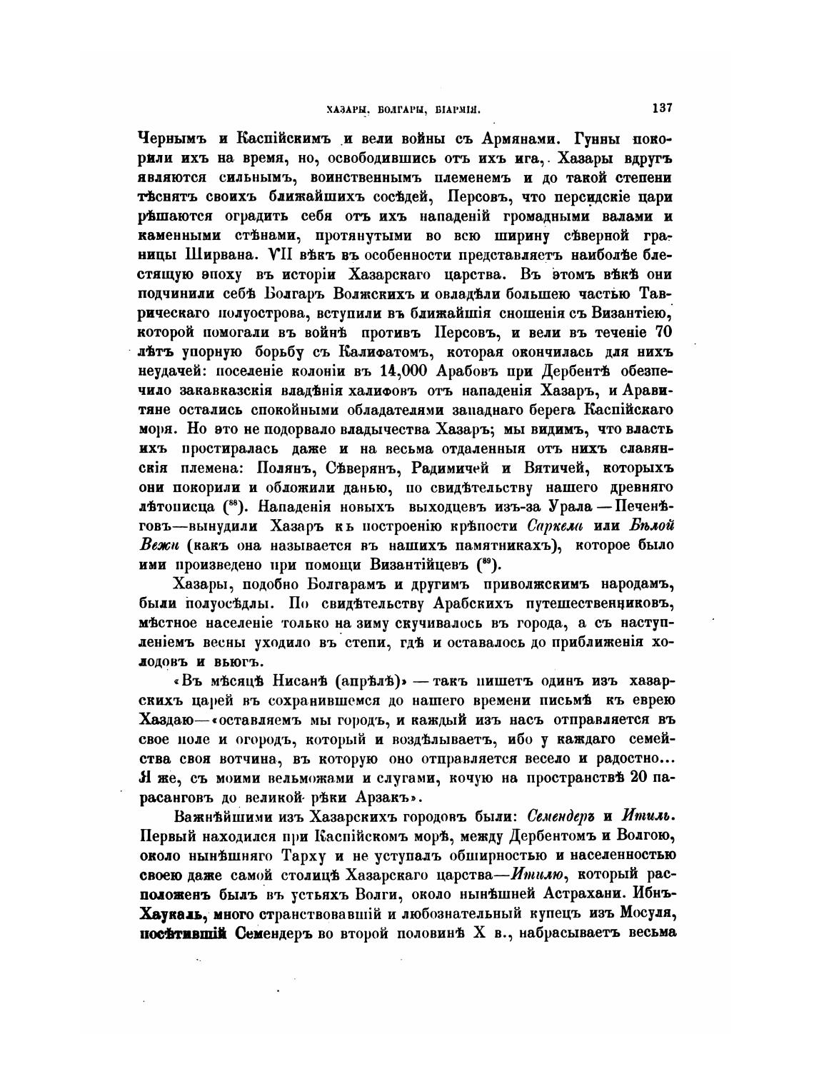 ВажнТйши.ми изъ Хазарскихъ городовъ были: Семендерб и Итиль.