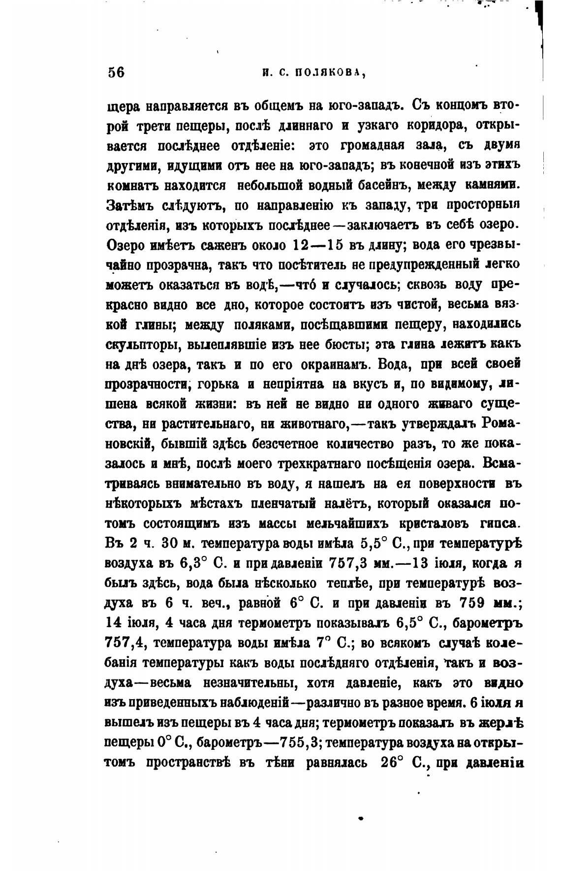 вышел изъ пещеры въ 4 часа дня; термометръ показахъ въ жертЬ