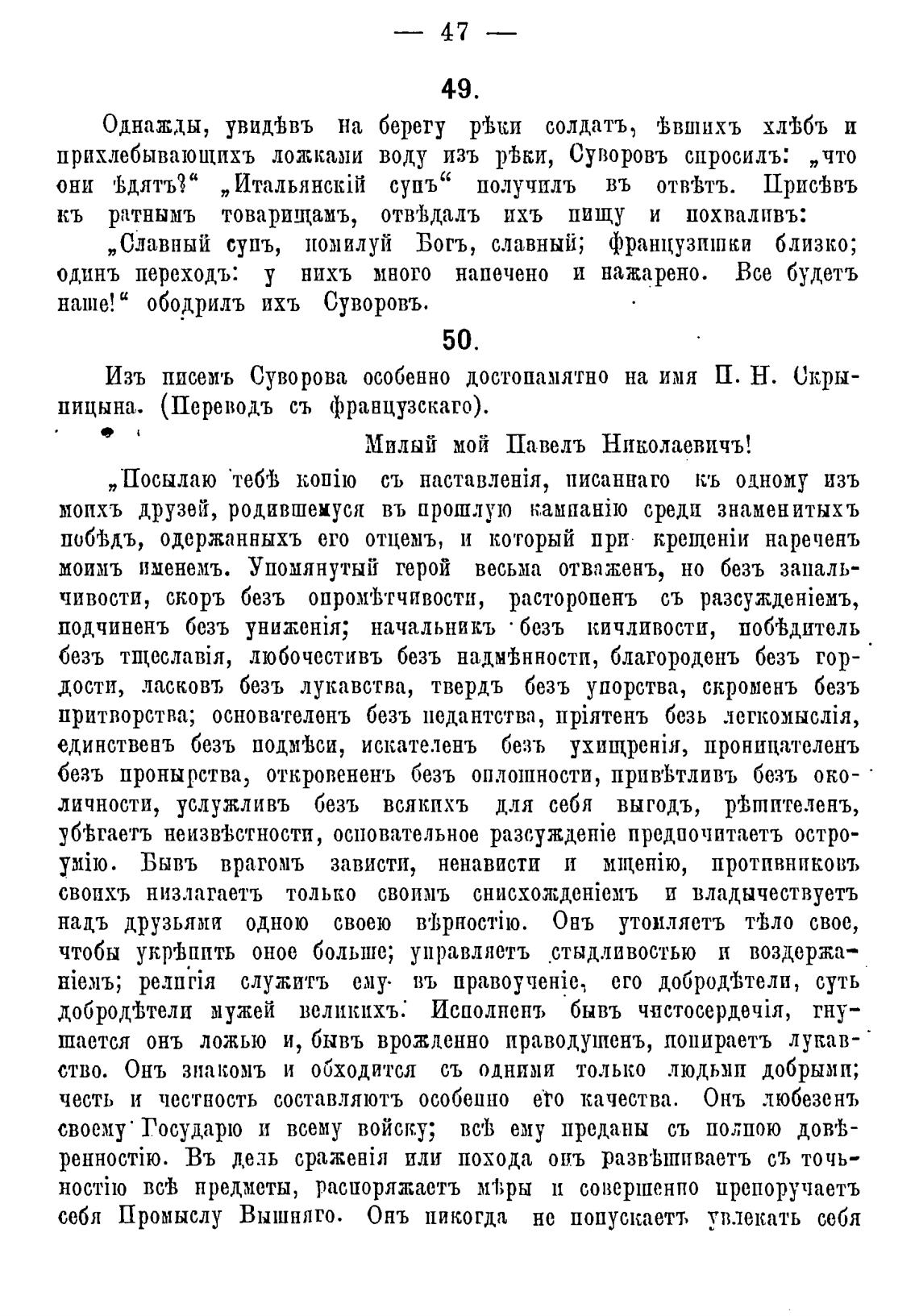 Изъ писемъ Суворова особенно достопамятно на имя П. Н. Скры-