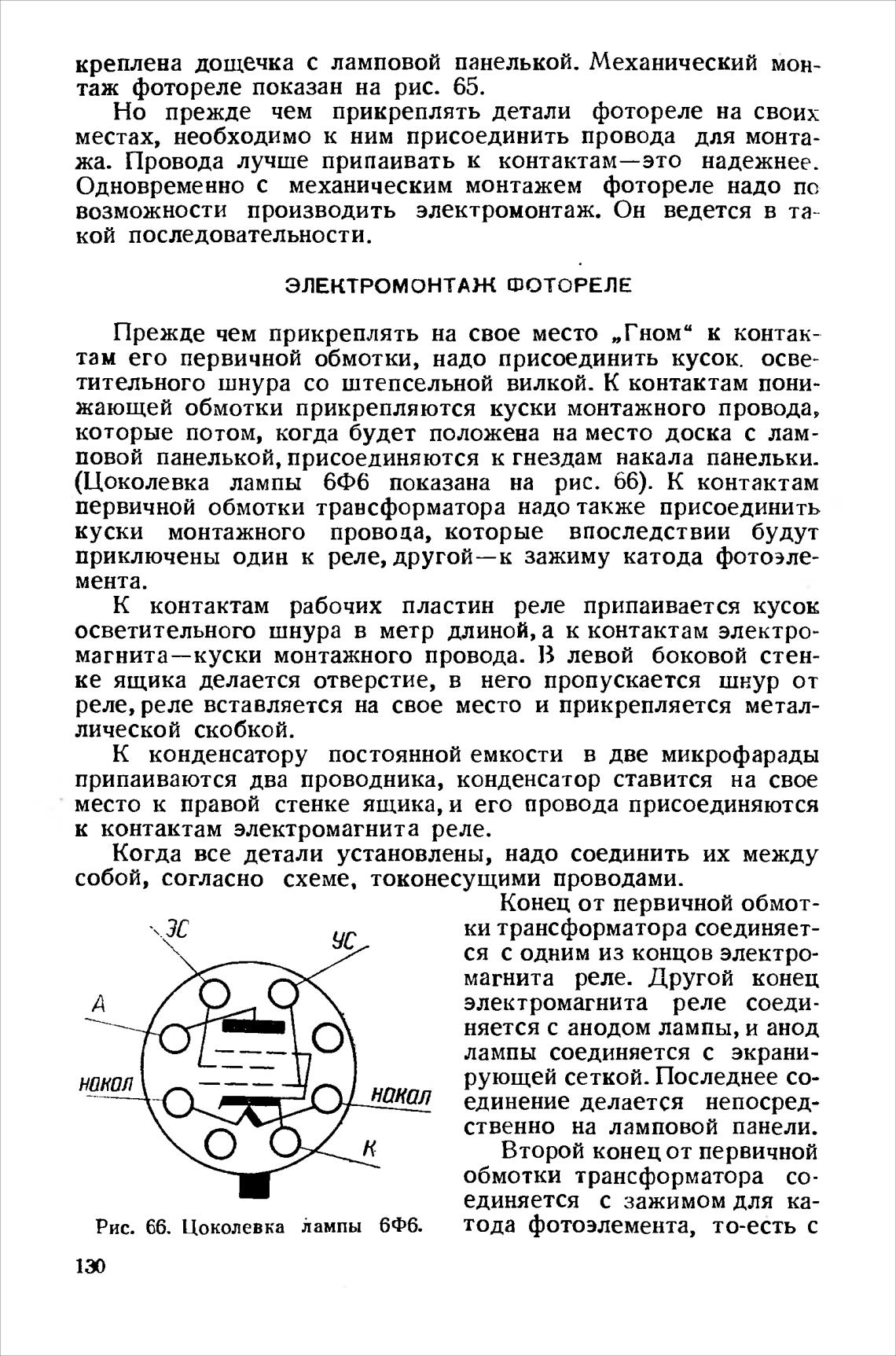 (Цоколевка лампы 6Ф6 показана на рис. 66). К контактам