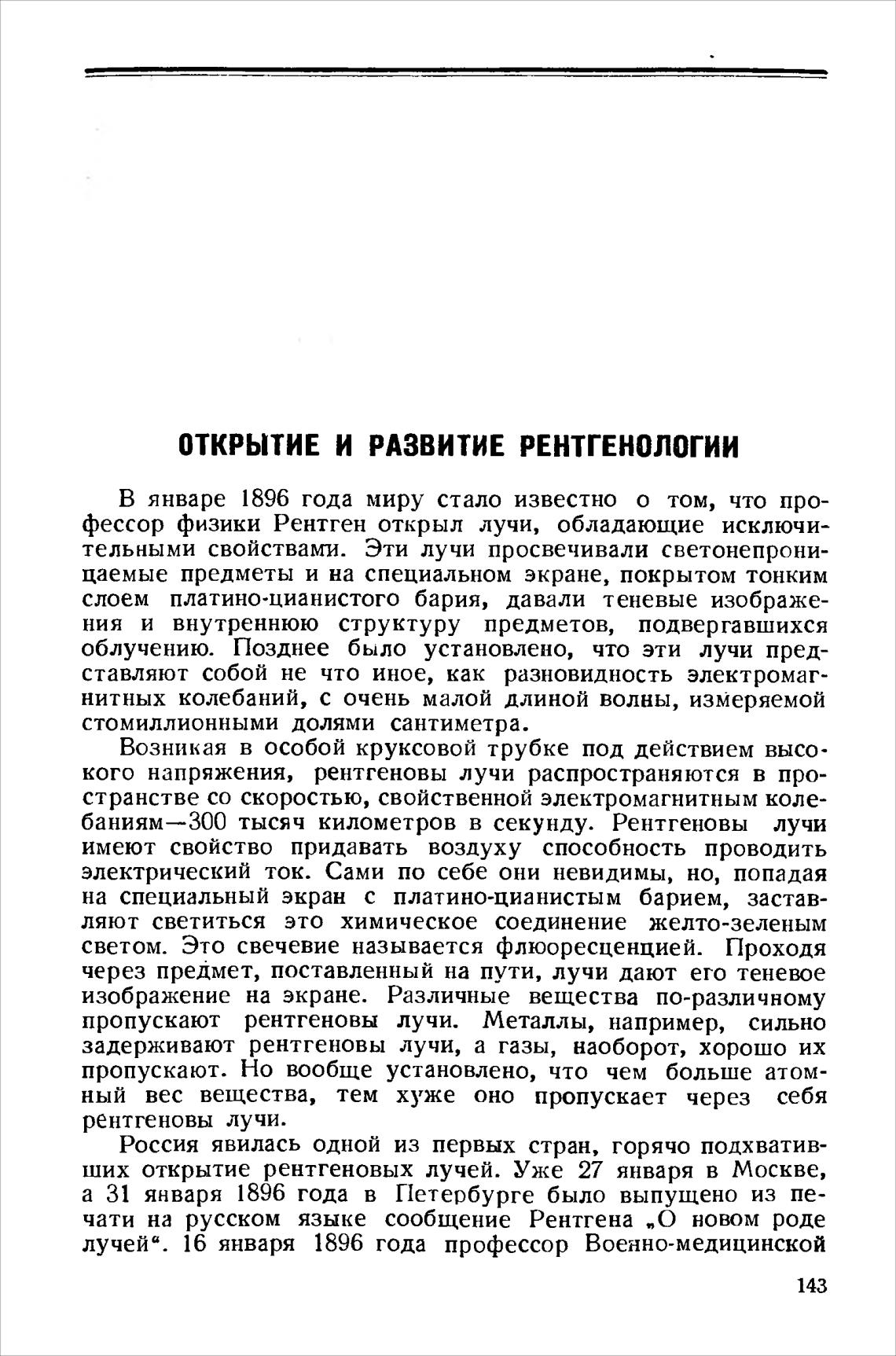 ОТКРЫТИЕ И РАЗВИТИЕ РЕНТГЕНОЛОГИИ