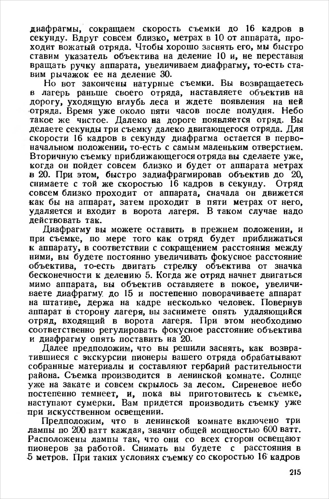 скорости 16 кадров в секунду диафрагма остается в перво-