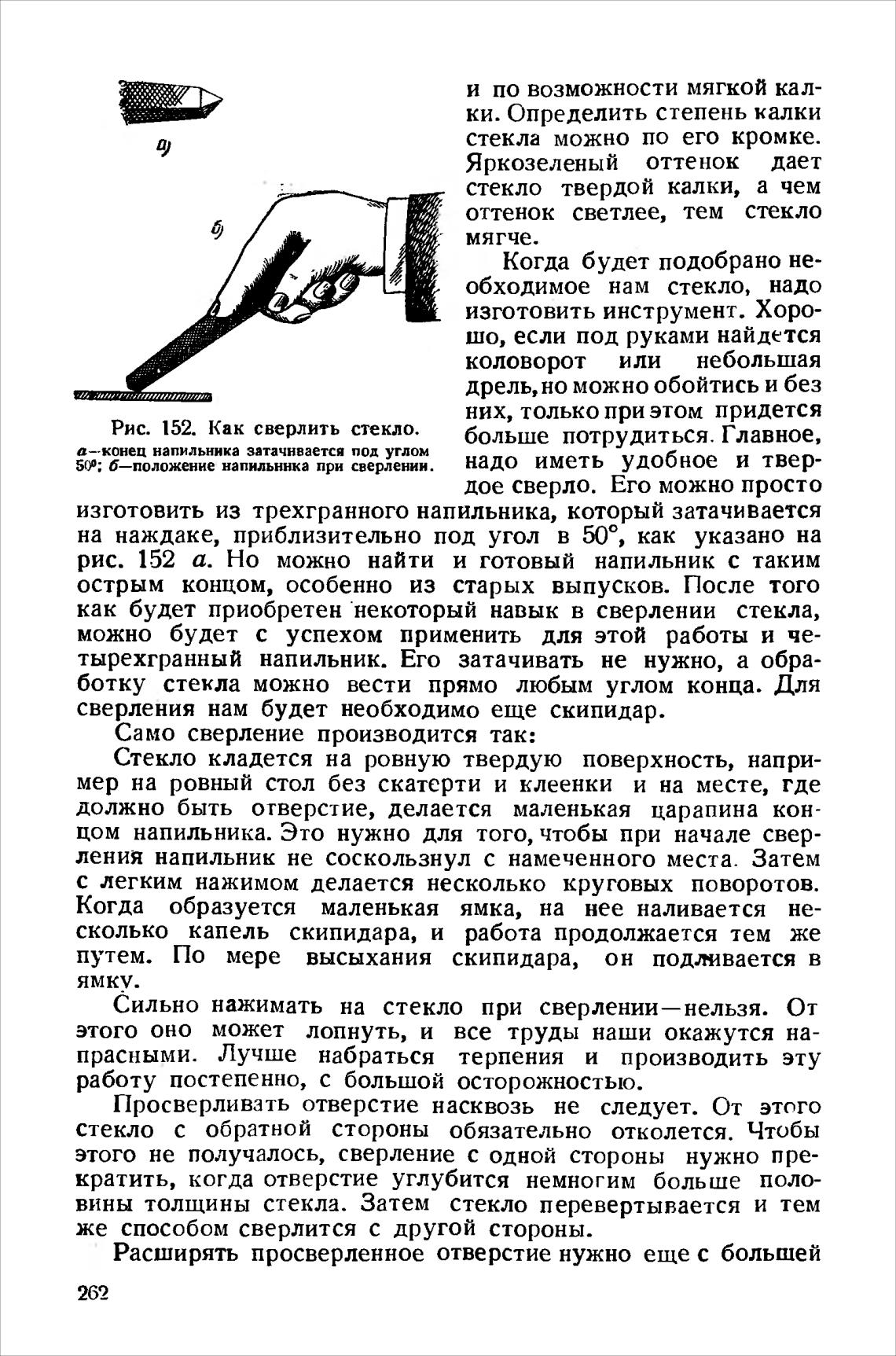 Рис. 152. Как сверлить стекло.