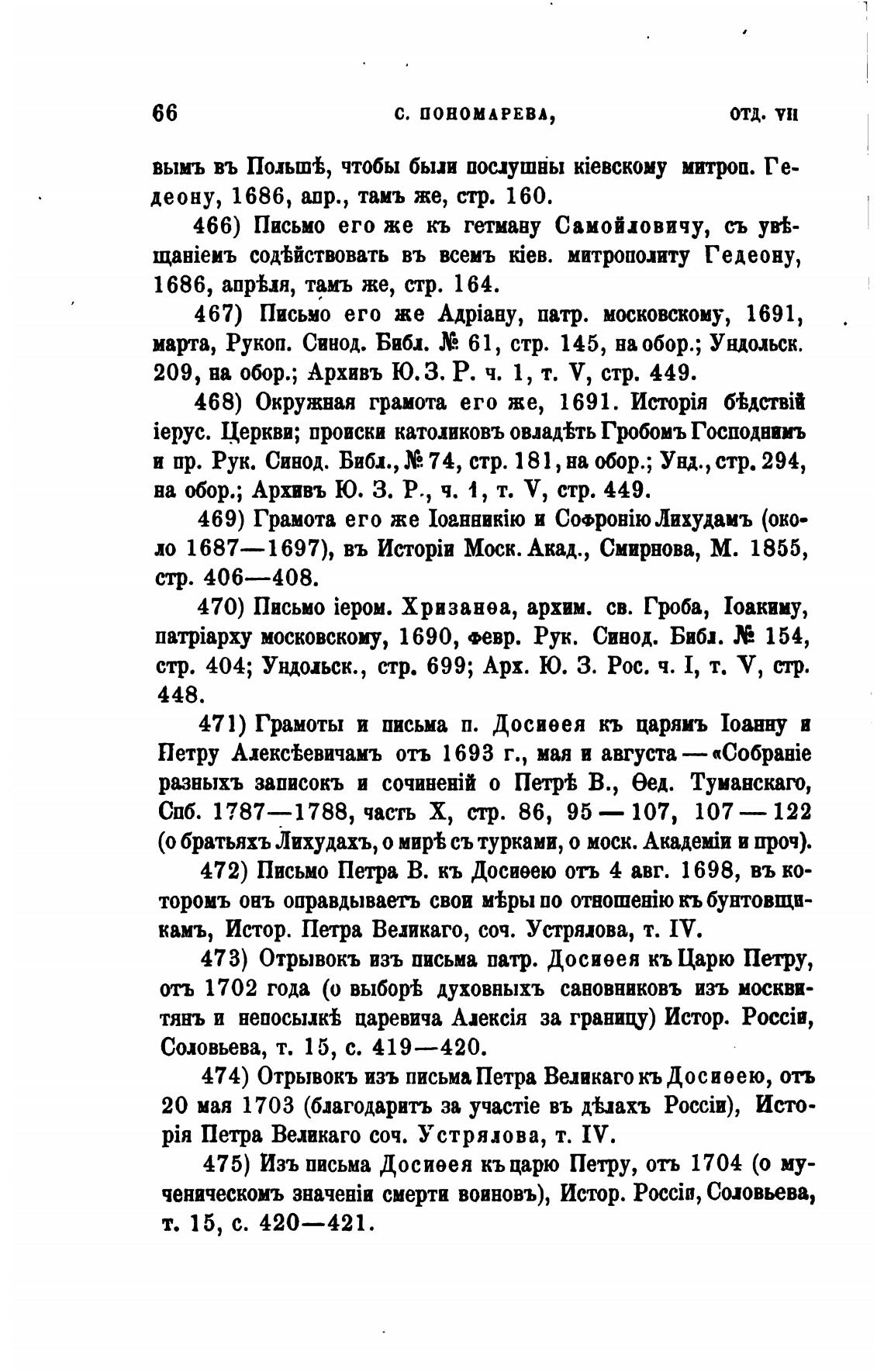 473) Отрывокъ изъ письма патр. Досиеея кь Царю Петру,