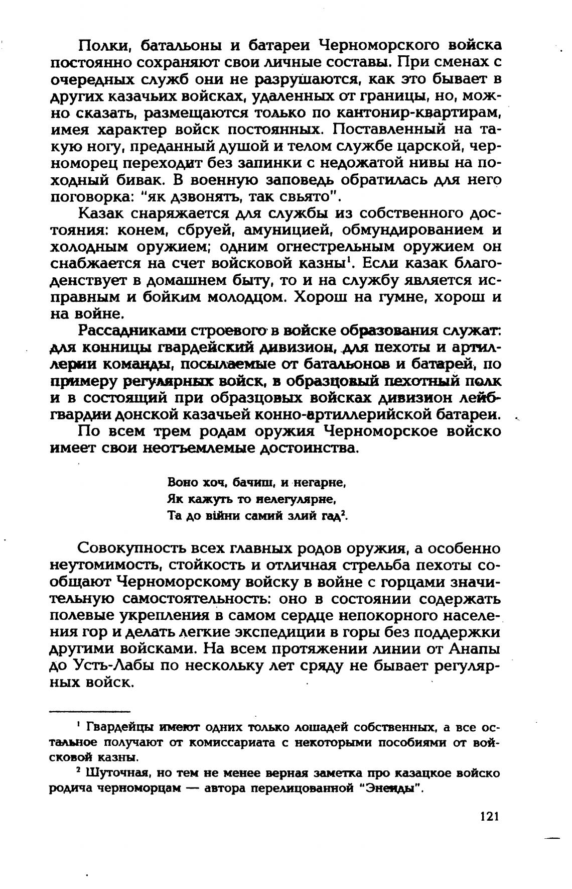 общают Черноморскому войску в войне с горцами значи-