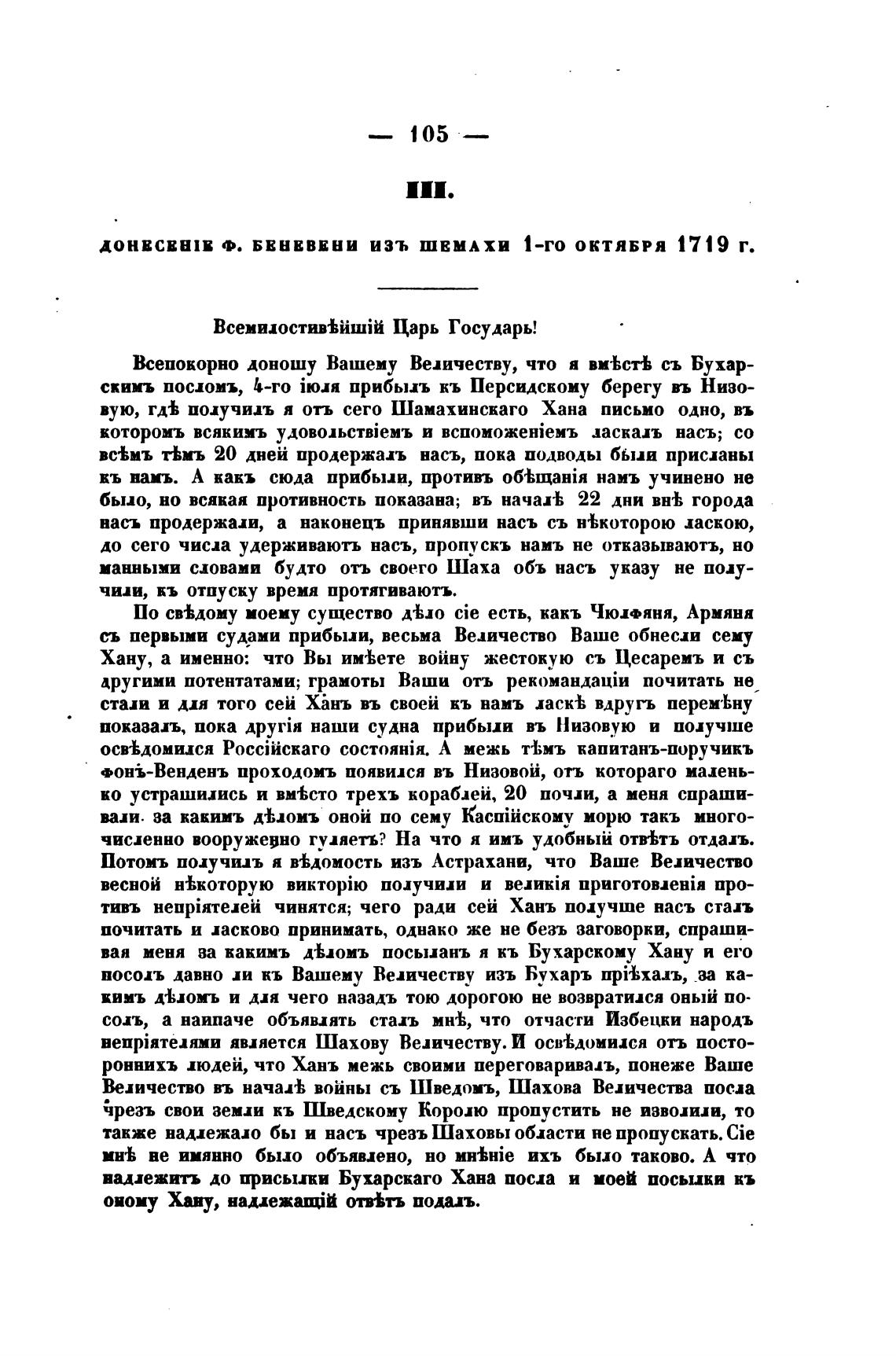 ДОНВСВШВ Ф. БВНВВЕНИ ИЗЪ ШЕМАХИ 1-ГО ОКТЯБРЯ 1719 Г.