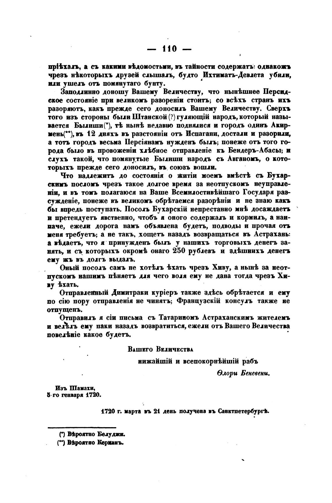 Заподлинно доношу Вашему Величеству, что ныв±шнее Персид-