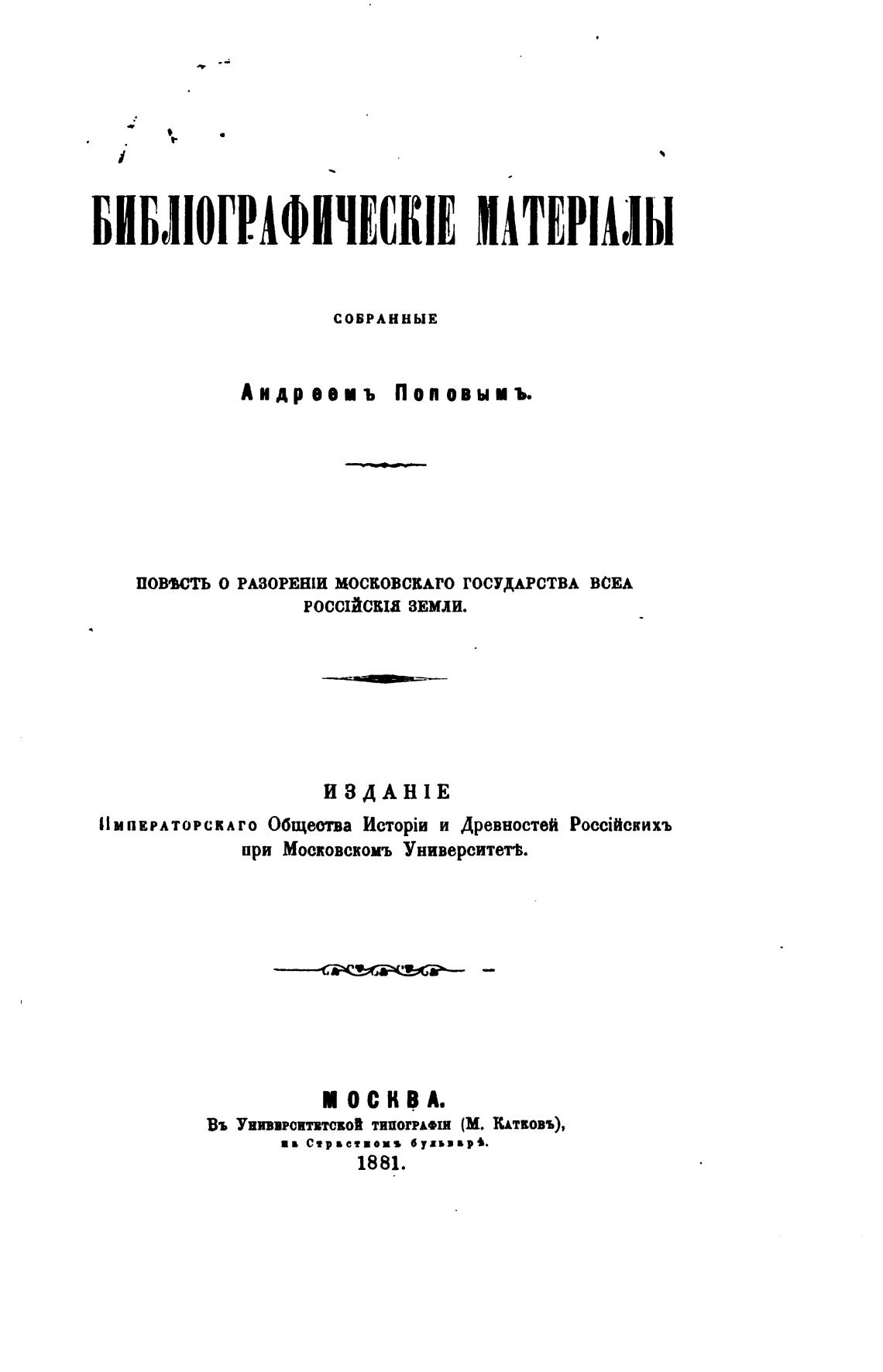 ПОИСТЬ О РАЗОРЕН[И МОСКОВСЕАГО ГОСУДАРСТВА ВСЕА