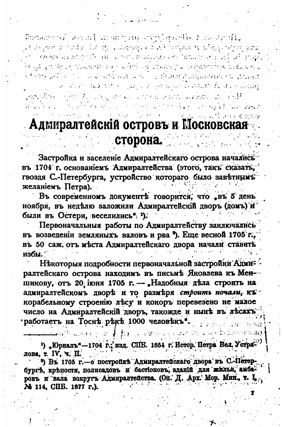 Первоначальныя работы по Адмиралтейству заключаясь