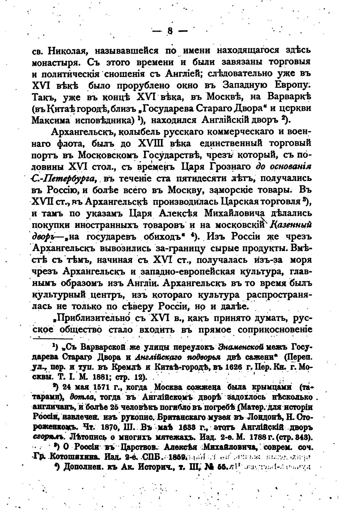 Х УП ст., въ Архангельск•Ь производилась Царская торговля 8),